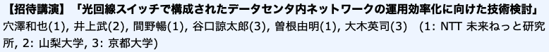 井上らの研究について,電子情報通信学会 光通信インフラの飛躍的な高度化に関する特別研究会 (EXAT) で招待講演が行われました.